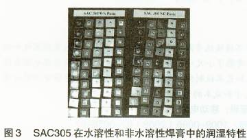 圖3顯示了SAC305水溶性和非水溶性焊劑在同樣的電路板表面涂覆處理情況下所反映出來的潤(rùn)濕特性。同樣,浸銀處理后形成了最差的潤(rùn)濕效果,隨后是OSP、ENIG和浸錫。經(jīng)熱風(fēng)整平技術(shù)表面處理的樣品在兩種情況下都顯示出具有較大的潤(rùn)濕面積。[page]