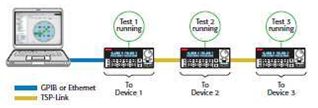 基于對(duì)SMU技術(shù)的理解,Mark A Cejer對(duì)競(jìng)爭(zhēng)者推出的SMU產(chǎn)品也作出了自己的評(píng)價(jià)。他表示,NI的產(chǎn)品大都基于PXI總線(xiàn),這在功率上就會(huì)受到限制;另外將眾多的板卡放在一個(gè)機(jī)箱中,溫度引起的噪聲影響也是一個(gè)問(wèn)題。與Agilent的產(chǎn)品相比,吉時(shí)利的SMU由于采用了專(zhuān)利的TSP技術(shù),因此可以將測(cè)試腳本程序上載到機(jī)器中,只需一個(gè)指令即可運(yùn)行整個(gè)程序,而Agilent的產(chǎn)品只能逐條讀取和執(zhí)行程序指令,所以吉時(shí)利的SMU可以實(shí)現(xiàn)更高的測(cè)試速度;同時(shí)通過(guò)TSP-Link虛擬背板技術(shù),可以靈活地實(shí)現(xiàn)多臺(tái)SMU的連接,在提高測(cè)試吞吐量的同時(shí)實(shí)現(xiàn)很高的測(cè)試效率。