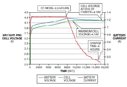 使用標準的CC/CV算法就可以對一個鋰化學電池的充電時間做出近似的估計,方法是用電池容量(安培小時)除以恒流模式下的充電電流(安培),得到的值再乘以充電時間1.3小時。通過正確的設計和對CC/CV模式算法的智能調(diào)整,可以得到更接近的計算值,但前者是一個良好的開始。另外,如果因為不良設計或不精確的電池電壓測量,使CC到CV模式的轉(zhuǎn)換開始太早,那情況就會糟得多?! ?br />