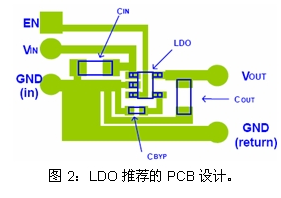 典型LDO應用需要增加外部輸入和輸出電容器。LDO穩(wěn)定性與輸出電容的ESR密切相關,選擇穩(wěn)定區(qū)域比較大的LDO有利于系統(tǒng)的設計,并可以降低系統(tǒng)板的尺寸與成本。利用較低ESR的電容一般可以全面提高電源紋波抑制比、噪聲以及瞬態(tài)性能。