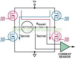圖2. 典型H橋電機(jī)控制中的高端檢測(cè)