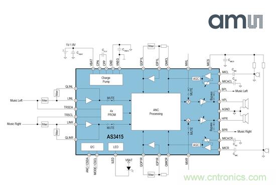 圖3:ams推出AS3415主動降噪揚(yáng)聲器驅(qū)動芯片