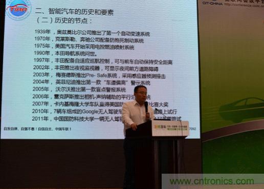 圖4:車載信息服務(wù)產(chǎn)業(yè)應(yīng)用聯(lián)盟秘書長龐春霖在論壇發(fā)表