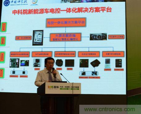 常務(wù)副主任陳大鵬在論壇現(xiàn)場發(fā)表《車聯(lián)網(wǎng)與新能源汽車》主題演講