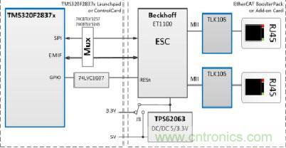圖示1-大聯(lián)大友尚推出的基于TI高性能MCU的EtherCAT接口參考設(shè)計系統(tǒng)架構(gòu)圖