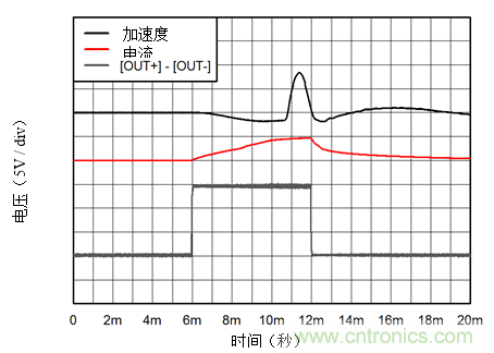 圖1:螺線管加速度圖:加速度= 5.85G / div;電流= 2A / div;電壓= 5V / div