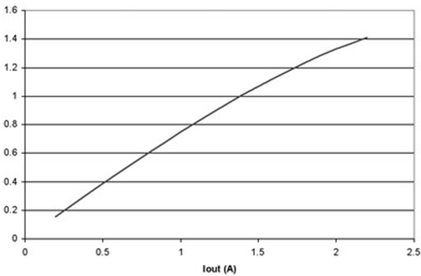 圖2顯示了作為工作電流函數(shù)的相對光輸出(光通量)。很明顯,光輸出與二極管電流是密切相關(guān)的,因此,可以通過改變正向電流進行調(diào)光。并且,在電流較小時,曲線幾乎是一條直線,但是在電流增大時,其斜率變小了。這就是說,在電流較低的時候,若將二極管電流增大一倍,則光輸出也會增加一倍;但是電流較高的時候,情況就不是這樣了:電流上升 100% 僅能使光輸出量增加 80%。這一點很重要,因為 LED 是由開關(guān)電源驅(qū)動的,這會導(dǎo)致在 LED 中產(chǎn)生相當(dāng)大的紋波電流。實際上,電源的成本在某種程度上是由所允許的電流大小決定的,紋波電流越大,電源成本就越低,但光輸出會因此受到影響。