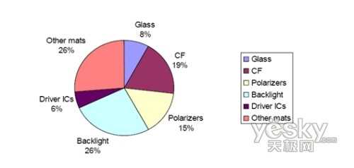 其中背光源的25%成本是基于CCFL的數(shù)據,如果采用LED作為背光源,它所占的成本將大大超過這個比例,大約要占到50%的成本。采用場順序制以后,拿掉了濾色片就相當于發(fā)光效率提高了70%,這是非??捎^的。這意味著LED的數(shù)量可以減少70%,LED的成本就可以減少70%。而且LED數(shù)量減少70%以后,其發(fā)熱量可以減少70%,耗電也可以減少70%。
