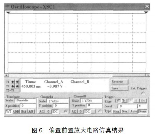 該放大電路經(jīng)過(guò)仿真以后從波形中可以觀察到輸出電壓被拉低到- 4 V 左右, 實(shí)現(xiàn)了合理設(shè)置靜態(tài)工作點(diǎn)的目的;