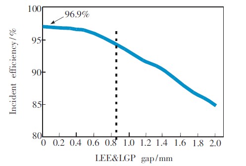 圖7 LED&LGP垂直距離的入射效率分布曲線