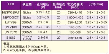 LED技術(shù)持續(xù)快速改進(jìn),制造商在使用新的材料、制造技術(shù)和LED設(shè)計(jì)來(lái)為同等大小的電流釋出更大的光輸出,這樣一來(lái),幾年前需要4個(gè)LED進(jìn)行背光的顯示屏如今可能采用2個(gè)LED就能實(shí)現(xiàn)同樣的背光亮度。不僅如此,過(guò)去通常使用冷陰極熒光燈(CCFL)進(jìn)行背光的4到7英寸較大顯示屏,如今正在轉(zhuǎn)向使用LED進(jìn)行背光。此外,LED的正向電壓正趨向更低。因此,不僅需要考慮驅(qū)動(dòng)器制造商的數(shù)據(jù)表曲線上的驅(qū)動(dòng)器效率,還需要基于采用所選LED對(duì)驅(qū)動(dòng)器進(jìn)行的評(píng)估來(lái)予以考慮。表1列舉了幾款LED的一些重要規(guī)范,顯示了這些LED在正向電壓和發(fā)光亮度等方面的差別。需要說(shuō)明的是,正向電壓范圍的變化較大,這意味著驅(qū)動(dòng)器的效率應(yīng)該采用LED規(guī)范的極限值來(lái)進(jìn)行評(píng)估。