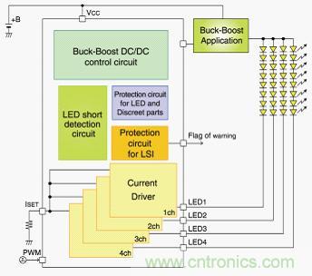 DC轉(zhuǎn)換器、可多燈驅(qū)動(dòng)小功率LED且實(shí)現(xiàn)了高調(diào)光率的電流驅(qū)動(dòng)器電路內(nèi)置于一枚芯片,擴(kuò)充了LED驅(qū)動(dòng)器產(chǎn)品陣容。