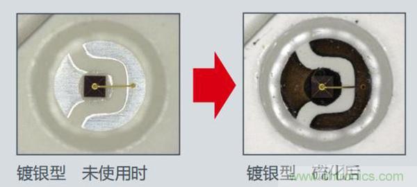 ROHM利用從元件到封裝垂直統(tǒng)合型生產(chǎn)體制的優(yōu)勢,晶片鍵合采用金錫(AuSu),引線采用金,框架采用金鈀(AuPd),實現(xiàn)了完全無銀化,從而使產(chǎn)品同時具備高亮度與優(yōu)異的抗硫化性能。
