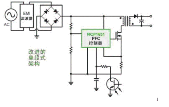 圖3(b):改進(jìn)的單段式PFC架構(gòu)。
