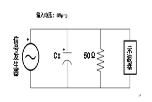 由于電子產(chǎn)品的工作電壓不斷地降低,而其功耗卻在增大, 這就要求DC/DC轉(zhuǎn)換器具有輸出電壓低和輸出電流高等特點(diǎn)。作為DC/DC轉(zhuǎn)換器或開關(guān)電源輸出電容,要求在開關(guān)管的工作頻率附近具有較低的紋波電壓。為了觀察PA-Cap在開關(guān)管一般工作頻率下的紋波電壓效果,進(jìn)行了如圖3所示的測試,其中的參數(shù)示于表1中。