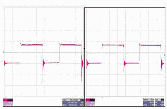 圖 6 傳統(tǒng)同步反向電源的負(fù)振鈴要比有源鉗位反向電源的負(fù)振鈴嚴(yán)重很多