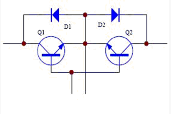 旁路開關(guān)常使用繼電器和可控硅。繼電器在中小功率的UPS 中廣泛應(yīng)用。優(yōu)點(diǎn)是控制簡單,成本低,缺點(diǎn)是繼電器有轉(zhuǎn)換時(shí)間,還有就是機(jī)電器件的壽命問題??煽毓璩R娪谥写蠊β蔝PS 中。優(yōu)點(diǎn)是控制電流大,沒有切換時(shí)間。但缺點(diǎn)就是控制復(fù)雜,且由于可控硅的觸發(fā)工作特性,在觸發(fā)導(dǎo)通后要在反向偏置后才能關(guān)斷,這樣就會產(chǎn)生一個(gè)最大10ms的環(huán)流電流,如圖2。如果采用IGBT,如圖3,則可以避免這個(gè)問題,使用IGBT 有控制簡單的優(yōu)點(diǎn),但成本較高。其工作原理為:當(dāng)輸入為正半周時(shí),電流流經(jīng)Q1、D2,負(fù)半周時(shí)電流流經(jīng)D1、Q2。