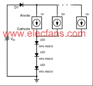 采用固定電壓電源供電的電阻是最簡(jiǎn)單、最低成本的穩(wěn)流方法。實(shí)際上,它們并不穩(wěn)流,只是在LED正向電壓變化及源電壓變化并導(dǎo)致電流變化從而引起亮度變異時(shí),簡(jiǎn)單地限制最大電流。對(duì)于低電流指示器應(yīng)用而言,這可能可以接受,但隨著電流增大及串聯(lián)的LED數(shù)量增加,就變得有問(wèn)題了。要克服這個(gè)問(wèn)題,需要費(fèi)錢(qián)又費(fèi)時(shí)地對(duì)LED進(jìn)行編碼及選擇恰當(dāng)?shù)碾娮鑱?lái)匹配LED串正向電壓。即使采取這些步驟,仍然會(huì)有由輸入電壓變化導(dǎo)致的亮度變化問(wèn)題。