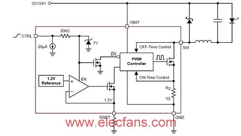 圖2:CAT4201高集成度350mALED降壓驅(qū)動(dòng)器,可以驅(qū)動(dòng)多達(dá)7顆LED