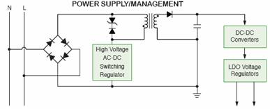 在這方面安森美半導(dǎo)體有豐富的器件可供使用,比如在AC-DC轉(zhuǎn)換應(yīng)用方面,有用于低功率離線電源的自供電高電壓?jiǎn)纹_(kāi)關(guān)穩(wěn)壓器NCP1010-4、用于中等功率離線電源的單片開(kāi)關(guān)穩(wěn)壓器NCP1027、高電壓門(mén)控振蕩器單片開(kāi)關(guān)穩(wěn)壓器NCP1050-5;在DC-DC轉(zhuǎn)換應(yīng)用方面,有3A開(kāi)關(guān)穩(wěn)壓器NCP3170和NCP3155、1.5開(kāi)關(guān)穩(wěn)壓器或用作高達(dá)5A控制器的NCP3063/4、0.5A/1.0 A/3A開(kāi)關(guān)穩(wěn)壓器LM2594/5/6、PWM控制器NCP3020/11和NCP1034;在LDO方面,有500mA LDO線性穩(wěn)壓器NCP5500、200mA輸出LDO線性穩(wěn)壓器NCP4588、50/150mA線性穩(wěn)壓器NCP4640/1、100mA LDO線性穩(wěn)壓器LP2951和80mA LDO線性穩(wěn)壓器NCP562。這些產(chǎn)品在應(yīng)用中的位置如圖1所示。這些電源方案具有高能效、低能耗及豐富的保護(hù)特性等特點(diǎn),非常適合智能電表應(yīng)用。