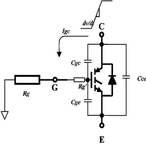 這種現(xiàn)象是由IGBT內(nèi)部的本征JFET引起的。如果JFET的影響可以最小化,C和C可隨著VCE的提高而很快下降。這可能減小實際的CRES,即減小dV/dt感生開通對IGBT的影響。
