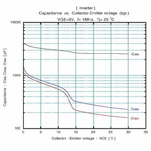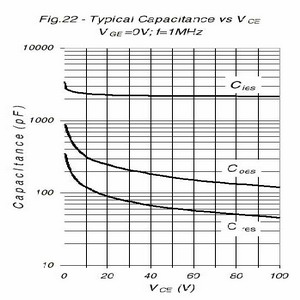 圖5 IRGP30B120KD-E寄生電容與VCE的關(guān)系[page]