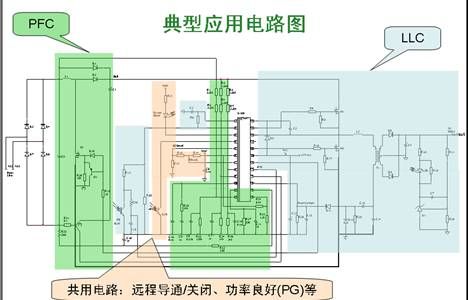圖1是采用NCP1910的典型應(yīng)用電路圖共用電路,它包括遠程PFC段、LLC段,以及實現(xiàn)導(dǎo)通/關(guān)閉、功率良好(PG)等的共用電路。