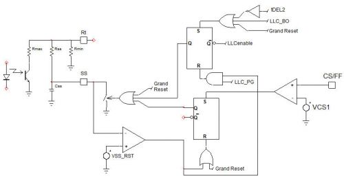 2. 完整軟啟動:SS引腳接地條件是:啟動,或CS/FF高于VCS1(1 V),或BO激活,或tDEL2結(jié)束。僅在VSS低于VSS(RST)時,SS引腳上的開關(guān)被釋放開路,執(zhí)行從啟動(重啟)開始的完整軟啟動。