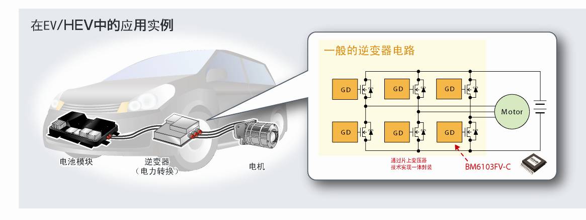 日本知名半導體制造商羅姆株式會社(總部位于日本京都市)開發(fā)出內置絕緣元件的柵極驅動器“BM6103FV-C”,最適合作為電動汽車(EV)和混合動力車(HEV)逆變回路中IGBT以及功率MOSFET的驅動元件。