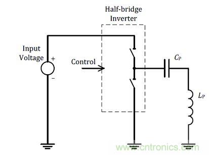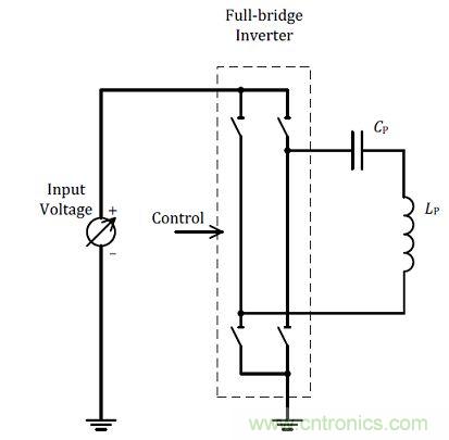 另外一個修正諧振偏差的方式為變壓式,參考圖(四)所示利用改變驅(qū)動電壓的方式進(jìn)行,當(dāng)諧振點(diǎn)偏高(電容或電感值偏?。r就降低驅(qū)動電壓使功率輸出降低到所設(shè)計(jì)的預(yù)定值,反之諧振點(diǎn)偏低時就反向操作??梢钥闯隼米儔菏降恼{(diào)整方式,修正容許空間相較于變頻式較為狹窄,主要為改變電壓的修正幅度沒有改變頻率方式的大,由于反應(yīng)較緩所以也比較好控制調(diào)整幅度。