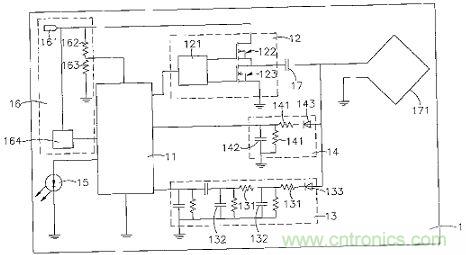 前段所提當(dāng)功率加大后因?yàn)槭茈姸松系挠嵦栒{(diào)制用負(fù)載電阻需要吸收較大的電流會產(chǎn)生功率損耗問題所以較為不可行,且為了反饋訊號容易被辯識需要有較大的反饋量使線圈上有較大的調(diào)制深度,這個設(shè)計(jì)下需將使接收端上的負(fù)載電阻設(shè)定較低的阻抗用來吸收更多的能量產(chǎn)生反饋,在這個循環(huán)下要提升感應(yīng)式電源供應(yīng)器之可用功率將遇到瓶頸。所以有廠商提出另一個電容式訊號調(diào)制方法。由香港ConvenientPower HK Ltd申請之美國專利公開號20110065398 UNIVERSAL DEMODULATION AND MODULATION FOR DATA COMMUNICATION IN WIRELESS POWER TRANSFER (用于無線電力中的數(shù)據(jù)調(diào)制與解調(diào)方法),參考圖(九)說明其內(nèi)容所提的在先前設(shè)計(jì)在受電端產(chǎn)生調(diào)制反饋能量的負(fù)載電阻改成電容,其因?yàn)椴捎秒娙菡{(diào)制時會在供電端發(fā)射線圈上產(chǎn)生電流與電壓相位差變化,所以可以利用分析此變化來進(jìn)行譯碼;這樣的設(shè)計(jì)可以不需要產(chǎn)生很大的調(diào)制深度即可達(dá)到反饋數(shù)據(jù)的目的,所以即使在較長的調(diào)制期間并不會消耗過多的能量。
