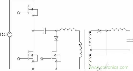 不對(duì)稱脈沖PWM 控制,其下管下降沿與上管的前沿互補(bǔ),上管可實(shí)現(xiàn)ZVS。只要設(shè)計(jì)的占空比較小,無需其它措施即使工作在較高頻率下開關(guān)損耗也很小。變壓器直流偏磁,除占空比端點(diǎn)外,偏磁電流小于不對(duì)稱半橋。寬范圍適用性優(yōu)于傳統(tǒng)的不對(duì)稱半橋。低壓大電流的應(yīng)用場合有一定的優(yōu)勢。