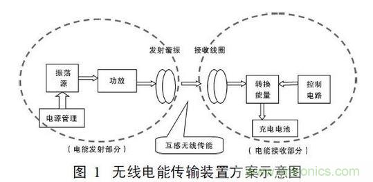 將直流電轉(zhuǎn)換成高頻交流電,然后通過沒有任何有有線連接的原、副線圈之間的互感耦合實現(xiàn)電能的無線饋送?;痉桨溉鐖D1所示。