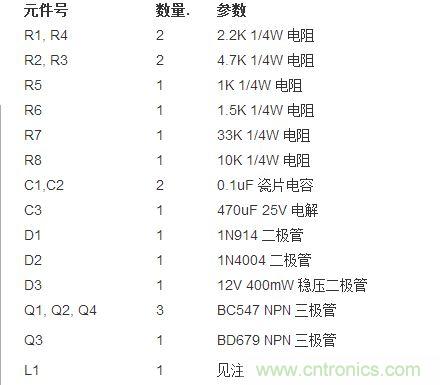 這個逆變電路可以提供高達(dá)800mA 12V電源。該電路簡單,效率約為75%。通過改變只是一些組件,還可以修改不同的電壓。該電路也適用摩托車音響等。