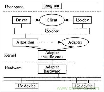 圖5 Linux內(nèi)核I2C總線驅(qū)動程序體系結(jié)構(gòu)