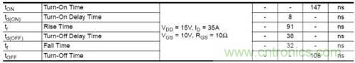 以FAIRCHILD公司的MOS為例,如表1所示:FDD8880開關(guān)時間特性表。