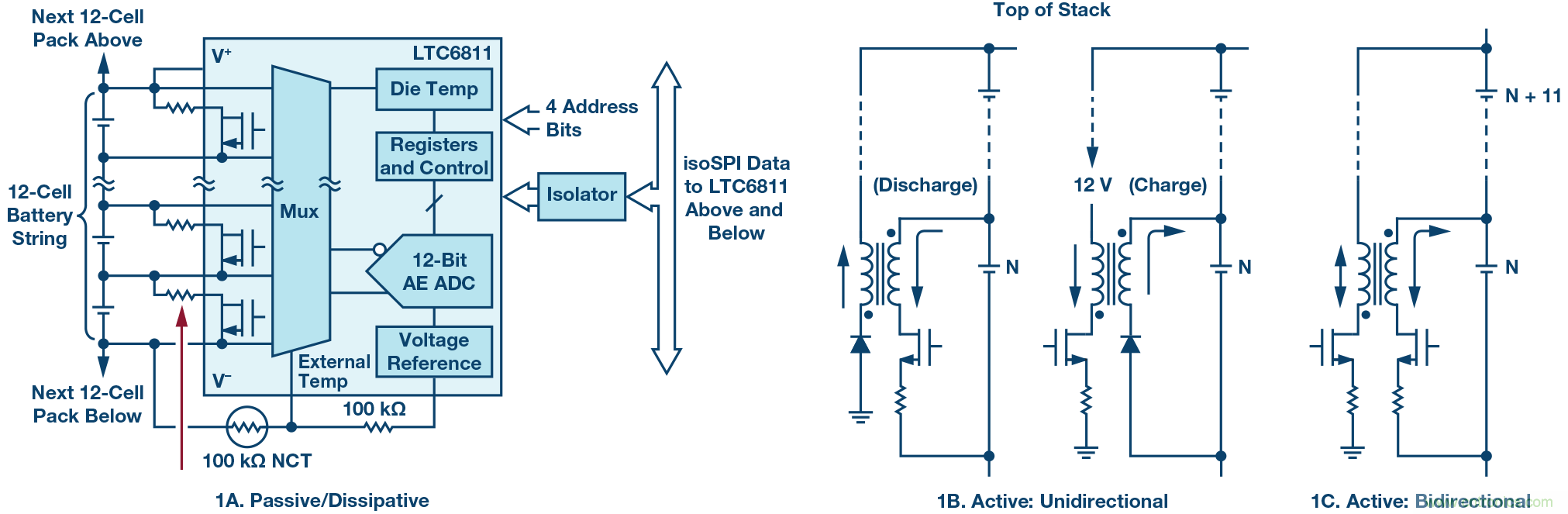 圖1. 電池單元均衡典型拓?fù)浣Y(jié)構(gòu)。