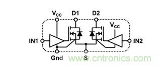 圖5:EPC 的 eGaN 集成驅(qū)動(dòng)器 IC 包含兩個(gè)功率晶體管,各配有相應(yīng)的優(yōu)化型柵極驅(qū)動(dòng)器。(圖片來(lái)源:EPC)