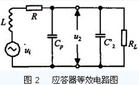當(dāng)RFID 的線圈天線進(jìn)入讀寫器產(chǎn)生的交變磁場(chǎng)中,RFID 天線與讀寫器天線之間的相互作用就類似于變壓器,兩者的線圈相當(dāng)于變壓器的初級(jí)線圈和次級(jí)線圈. 由RFID 的線圈天線形成的諧振回路如圖2所示,它包括RFID 天線的線圈電感L 、寄生電容Cp和并聯(lián)電容C2′,其諧振頻率為: