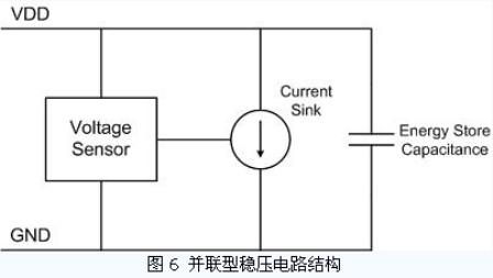 在輸入信號幅度較高時,電源穩(wěn)壓電路必須能保證輸出的直流電源電壓不超過芯片所能承受的最高電壓;同時,在輸入信號較小時,穩(wěn)壓電路所消耗的功率要盡量的小,以減小芯片的總功耗。