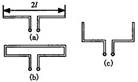 (a)偶極子天線;(b)折合振子天線;(c)變形偶極子天線