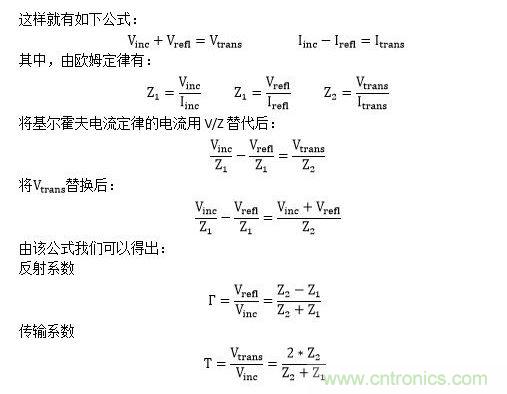 當(dāng)信號穿越阻抗不連續(xù)的點(diǎn)時,會產(chǎn)生反射電壓與電流,從而使得分界面兩邊的電壓和電流相等(基爾霍夫定律)。