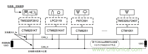 與485類(lèi)似,CAN-bus也是以總線的方式進(jìn)行通信的,所有的CAN節(jié)點(diǎn)都掛在一對(duì)差分線上。但CAN總線中的節(jié)點(diǎn)不存在主從的概念,當(dāng)節(jié)點(diǎn)有數(shù)據(jù)需要上傳時(shí)可自主、即時(shí)發(fā)送,先進(jìn)的仲裁機(jī)制保證數(shù)據(jù)不會(huì)沖突。