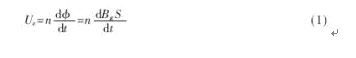 電磁感應(yīng)式傳感器的工作原理是:當(dāng)它貼著鋼管表面掃查時,鋼管缺陷產(chǎn)生的漏磁場會引起穿過線圈的磁通量變化,從而使電磁線圈中產(chǎn)生感生電動勢,形成缺陷信號。當(dāng)檢測用的電磁線圈與鋼管做相對運(yùn)動時,檢測漏磁場的線圈所產(chǎn)生的感應(yīng)電動勢Uc為: