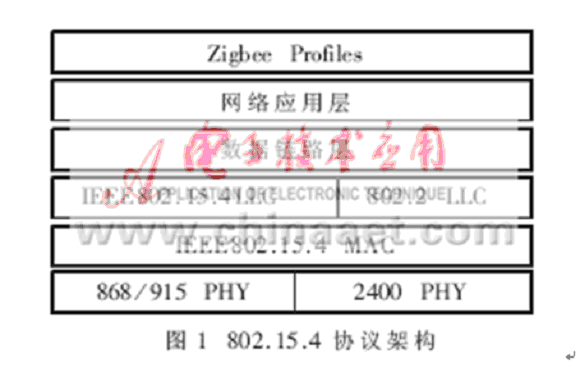 IEEE802.15.4滿足國際標(biāo)準(zhǔn)組織(ISO)開放系統(tǒng)互連(OSI)參考模式。它定義了單一的MAC層和多樣的物理層(如圖1所示),表1中概括了802.15.4的一些特點。Zigbee聯(lián)盟制定了MAC層以上協(xié)議,其協(xié)議套件由高層應(yīng)用規(guī)范、應(yīng)用會聚層、網(wǎng)絡(luò)層、數(shù)據(jù)鏈路層和物理層組成。