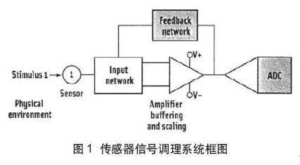 信號(hào)調(diào)理往往是把來自傳感器的模擬信號(hào)變換為用于數(shù)據(jù)采集、控制過程、執(zhí)行計(jì)算顯示讀出和其他目的的數(shù)字信號(hào)。模擬傳感器可測(cè)量很多物理量,如溫度、壓力、力、流量、運(yùn)動(dòng)、位置、PH、光強(qiáng)等。通常,傳感器信號(hào)不能直接轉(zhuǎn)換為數(shù)字?jǐn)?shù)據(jù),這是因?yàn)閭鞲衅鬏敵鍪窍喈?dāng)小的電壓、電流或電阻變化,因此,在變換為數(shù)字?jǐn)?shù)據(jù)之前必須進(jìn)行調(diào)理。調(diào)理就是放大,緩沖或定標(biāo)模擬信號(hào),使其適合于模/數(shù)轉(zhuǎn)換器(ADC)的輸入。然后,ADC對(duì)模擬信號(hào)進(jìn)行數(shù)字化,并把數(shù)字信號(hào)送到微控制器或其他數(shù)字器件,以便用于系統(tǒng)的數(shù)據(jù)處理(見圖1)。此鏈路工作的關(guān)鍵是選擇運(yùn)放,運(yùn)放要正確地接口被測(cè)的各種類型傳感器。然后,設(shè)計(jì)人員必須選擇ADC。ADC應(yīng)具有處理來自輸入電路信號(hào)的能力,并能產(chǎn)生滿足數(shù)據(jù)采集系統(tǒng)分辨率、精度和取樣率的數(shù)字輸出。