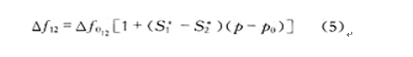 當(dāng)傳感器表面有壓力作用時(shí),無(wú)線SAW壓力傳感器的壓電薄膜就會(huì)產(chǎn)生形變,薄膜材料的應(yīng)變會(huì)使得聲表面波傳播速度發(fā)生變化,從而使聲表面波的中心諧振頻率發(fā)生變化。通過(guò)無(wú)線檢測(cè)SAW壓力傳感器的中心諧振頻率變化,就能得到壓力變化的數(shù)據(jù)。假設(shè)溫度對(duì)兩個(gè)單端諧振器的中心諧振頻率影響很小,則兩諧振器中心頻率差的變化與所測(cè)壓力之間的關(guān)系式可表示為