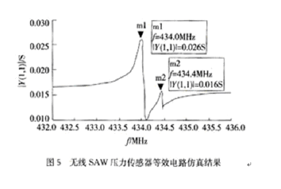 - SAW單端諧振器的等效電路對(duì)SAW壓力傳感器的仿真結(jié)果。