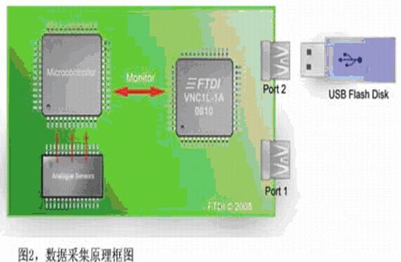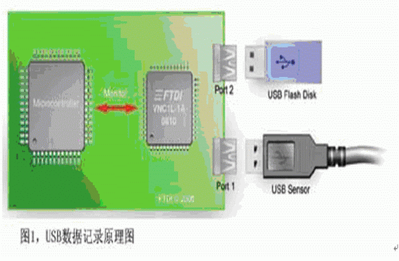 目前市場上有很多種數(shù)據(jù)采集設(shè)備可用于在PC上記錄數(shù)據(jù),如National Instrument的LabVIEW,不過這類設(shè)備的傳感器件開始越來越多地采用USB接口而不是RS232或其他傳統(tǒng)接口。過去在嵌入式系統(tǒng)中應(yīng)用USB設(shè)備需要性能相對較強的硬件,要帶有USB Host控制器接口、RTOS以及USB軟件驅(qū)動,結(jié)果因USB Host功能實施成本的原因設(shè)計工程師一直都不太愿意在小型8位或16位MCU系統(tǒng)上增加USB設(shè)備。但隨著最新一代智能USB Host控制器IC的推出,與MCU配合使用不僅可為PC應(yīng)用使用USB數(shù)據(jù)采集設(shè)備,而且還可將數(shù)據(jù)存儲在低成本高容量的閃存盤上。
