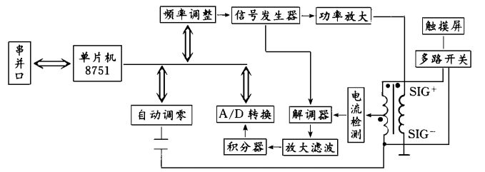 加到觸摸屏的右邊電極上,觸摸屏的上邊和下邊電極全部開路,這樣在觸摸屏的X 方向上建立了交流電壓梯度,經(jīng)解調(diào)器解調(diào)和濾波后,可得到X 方向上的觸摸電流為iX= KXXV/ Zf ,其中,V為變壓器次級(jí)對(duì)于中心抽頭虛地的電壓,KX 為常量,V/ Zf 為電路等價(jià)阻抗觸摸電流。第2 種模式為將SIG+加到觸摸屏的左邊電極上,同時(shí)也加到觸摸屏的右邊電極上,這時(shí)在X 方向上建立了均勻的交流電壓。如果在觸摸屏上任意一點(diǎn)進(jìn)行觸摸,則經(jīng)解調(diào)器解調(diào)和濾波后,得到其觸摸電流為i ZX= KZXV/ Zf ,其中,KZX為常量。由iX 和iZX得X 方向的觸摸位置坐標(biāo)為X= (KZX/ KX)·( iX/ i ZX ) ,式中,iX、iZX在以上2 種掃描模式下測(cè)得,而常量KZX/ KX 可由實(shí)驗(yàn)確定。一旦確定了KZX / KX,就可計(jì)算出X 方向的任意觸摸位置坐標(biāo)X。同樣,第3 種模式是將SIG+和SIG-分別加到觸摸屏的上邊電極和下邊電極上,即可得到Y(jié)方向上的觸摸電流為i Y= KYYV/ Zf ,其中,KY 為常量。第4種模式是同時(shí)將SIG+加到觸摸屏的上邊電極和下邊電極上,得等價(jià)阻抗觸摸電流為 iZY= KZYV/ Zf ,其中,KZY為常量。也可由 iY 和 iZY得Y 方向的觸摸位置坐標(biāo)為 Y=(KZY/ KY) ( i Y/ i ZX) ,其中,常量KZY/ KY 同樣可由實(shí)驗(yàn)確定。